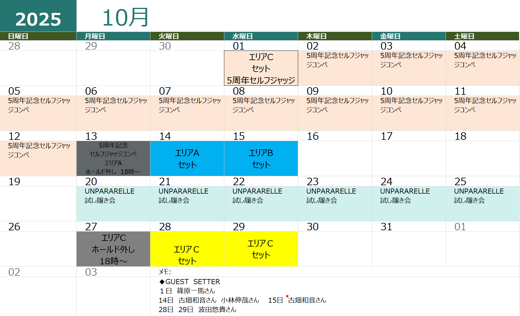 こちらを記念して10月1日から13日までの13日間、エリアC壁を使用してセルフジャッジコンペを開催します。