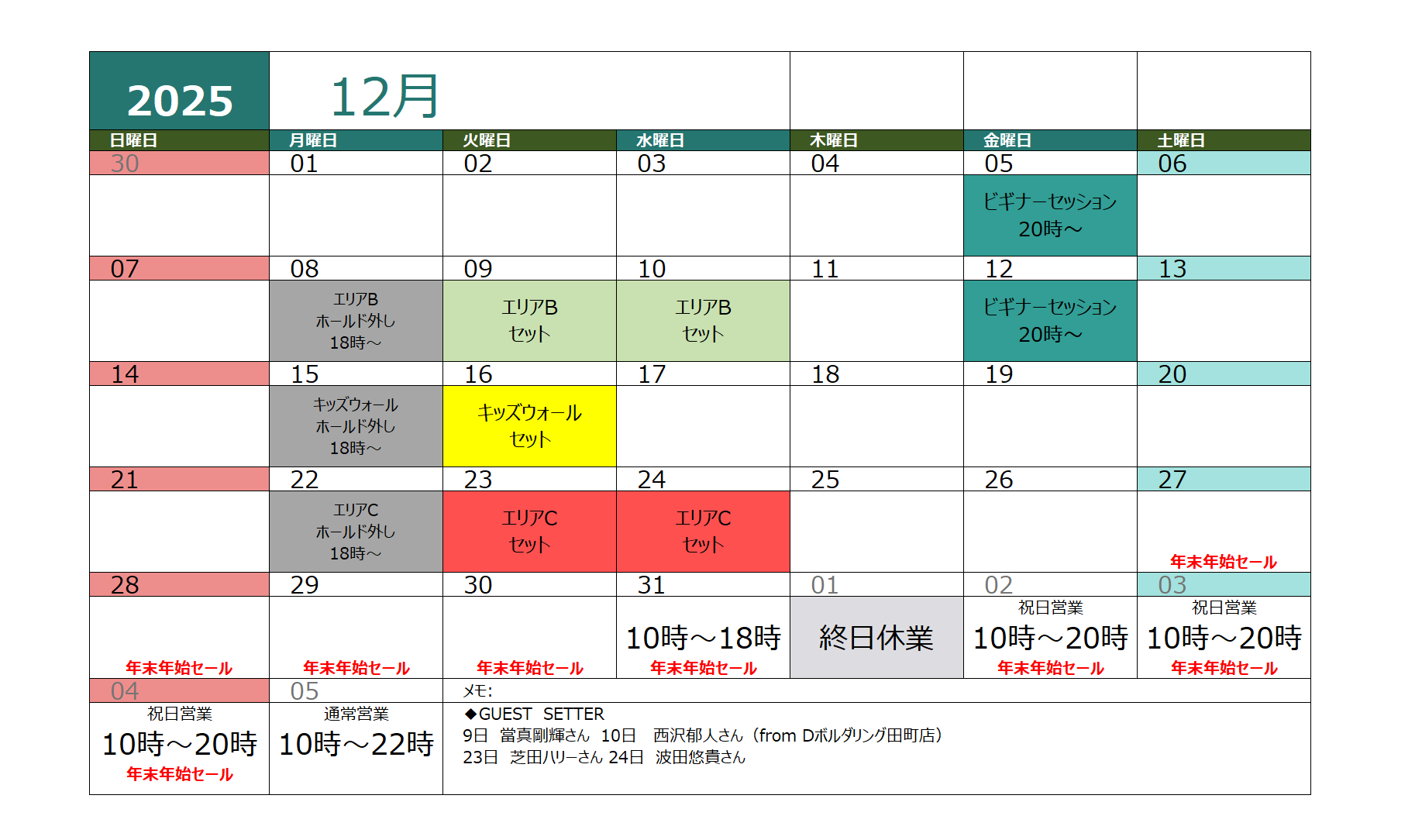 ディーボルダリング本厚木店の12月のスケジュールを公開🗓️