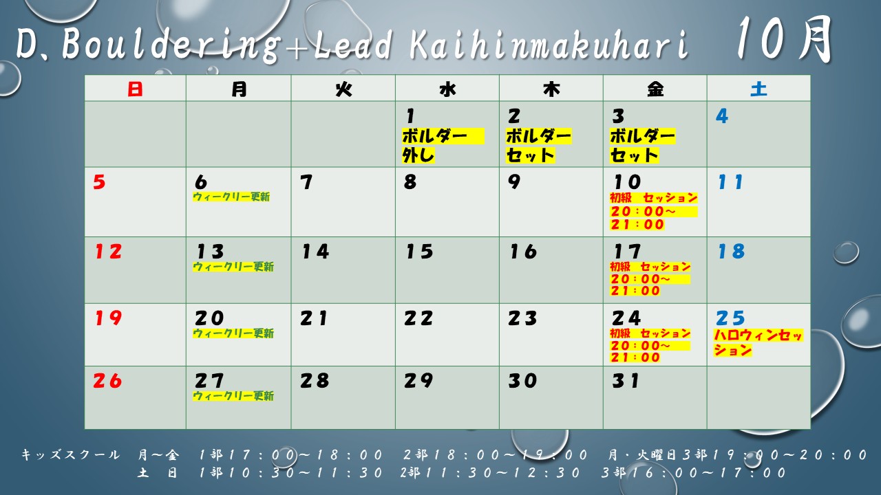 ✨dボルダリング海浜幕張店 10月のカレンダー、ホールド替え日程のお知らせです✨