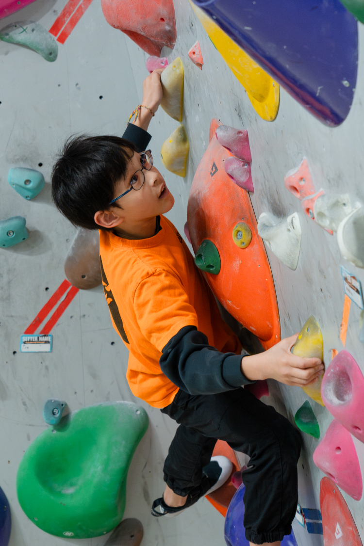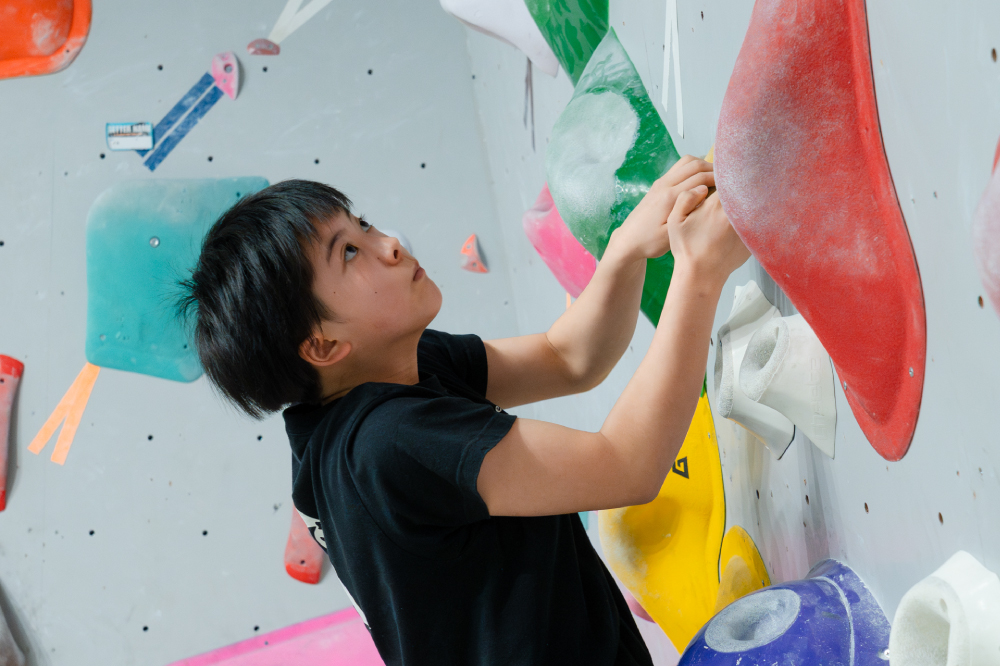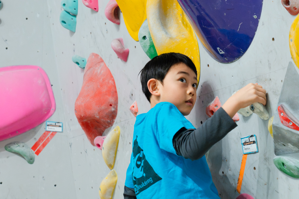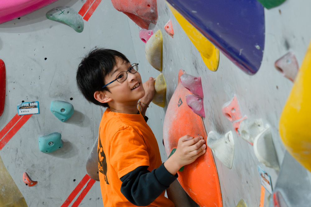 ボルダリングは、全身を使う運動でありながら、自分でルートを考える思考力も育てるスポーツです。 ただ登るだけでなく、「どうやったら登れるのか?」と試行錯誤する中で集中力や判断力が身につきます。 そして、難しい課題を登り切った瞬間の達成感は子どもたちへの大きな自信へと繋がります。 体力だけでなく、考える力と心の成長も育める習い事です。