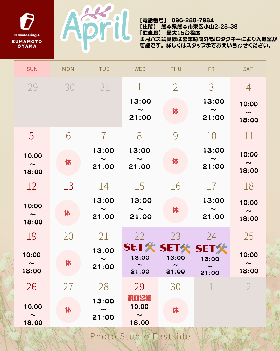 熊本小山店の4月 営業スケジュールです!