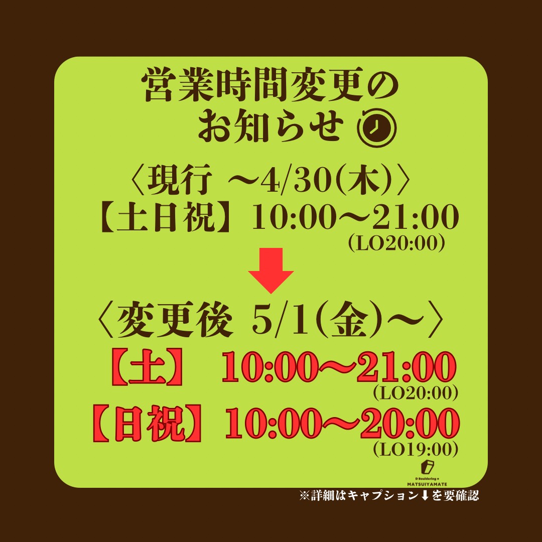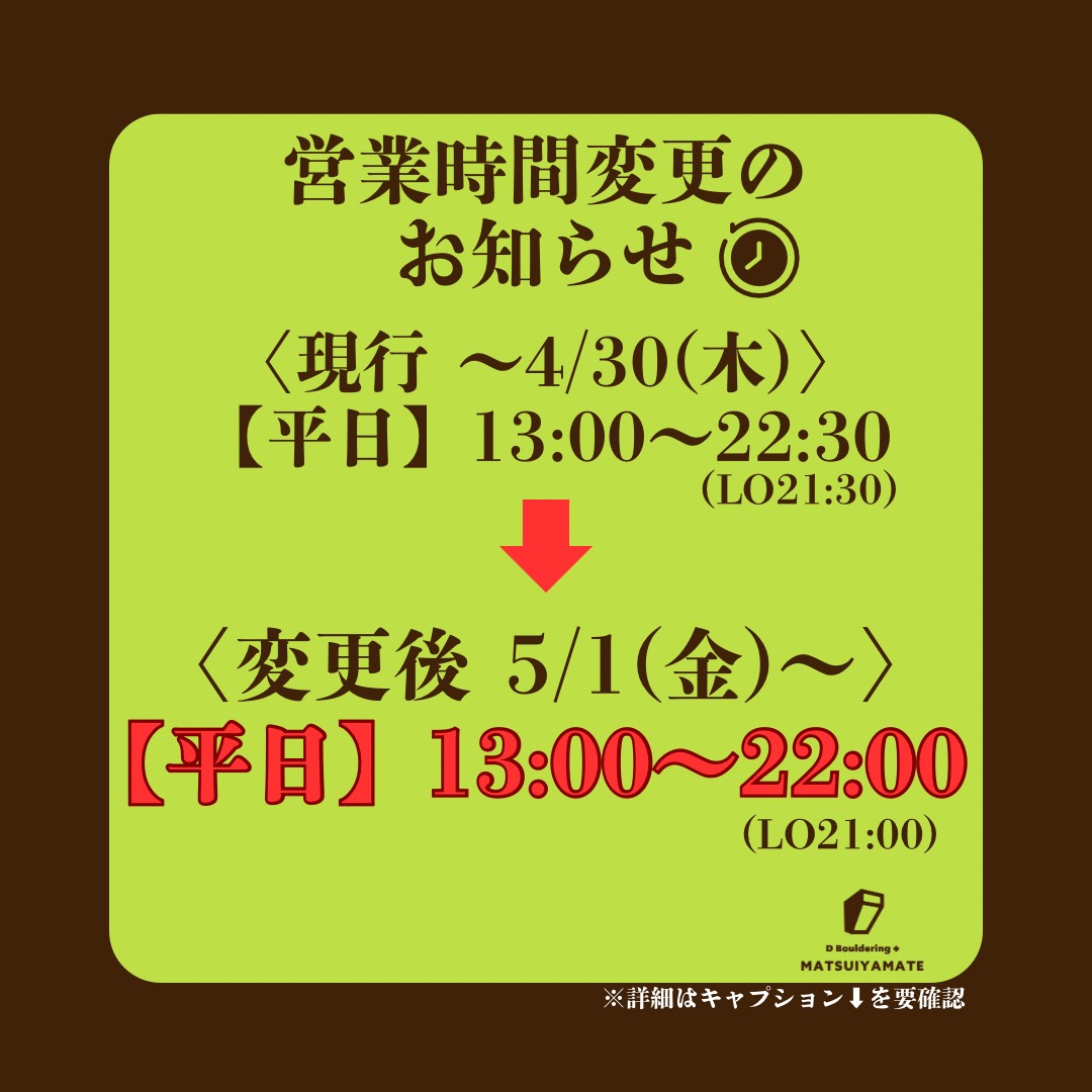引き続き、Dボルダリング+松井山手店をご愛顧賜りますようお願い申し上げます。