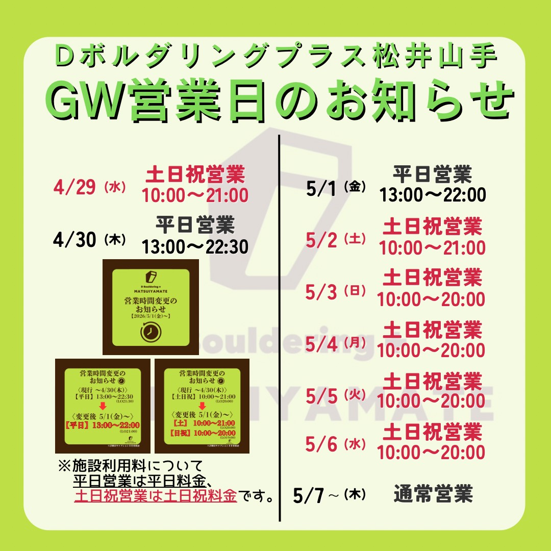 いつもDボルダリングプラス松井山手店をご利用いただき、誠にありがとうございます。