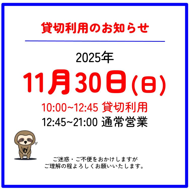 - 11月 貸切利用とホールド替えによるエリア制限について