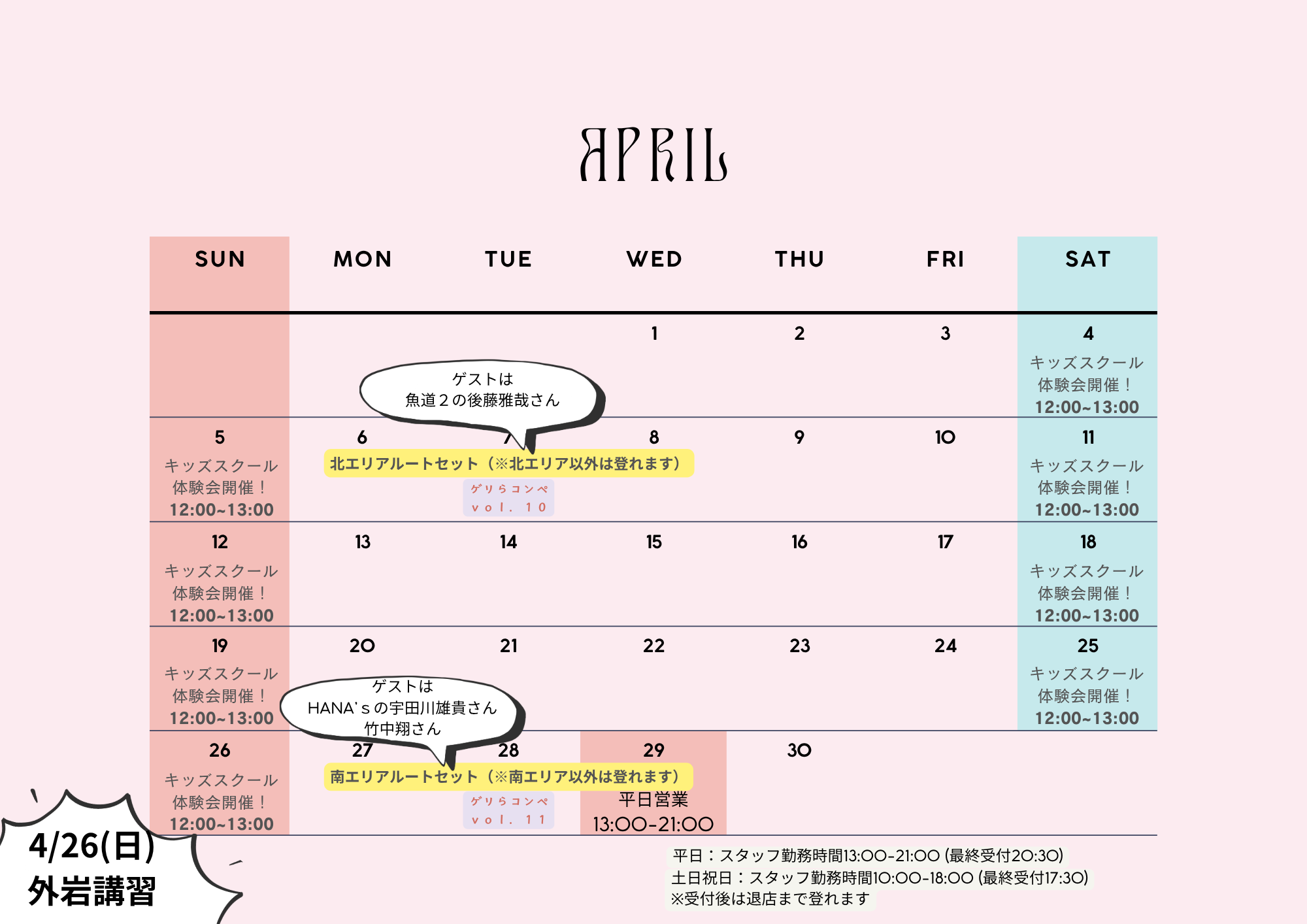 【Dボル浅間町店 4月カレンダー】