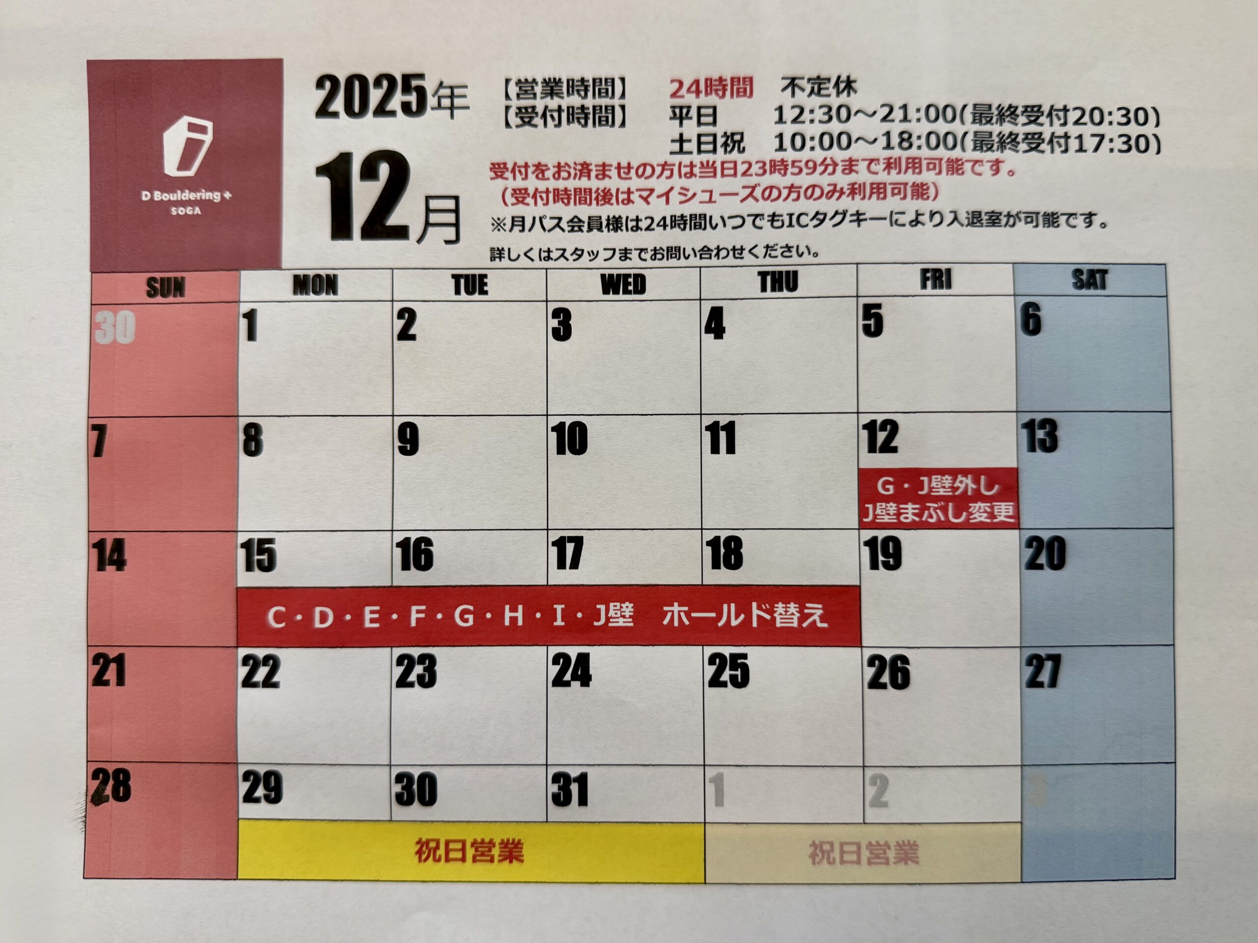 12月15日(月)から18日(木)にかけてメインエリアの全面ホールド替えを行います。