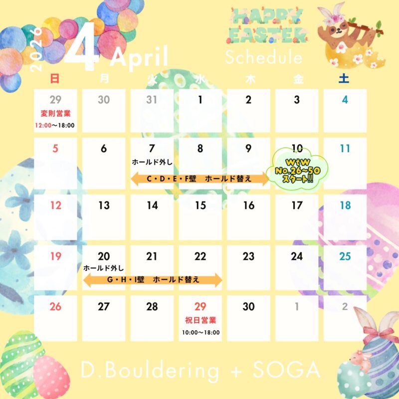 4月10日から19日までは、WtW課題NO.1~NO.50まですべての課題が登れる期間です🤩