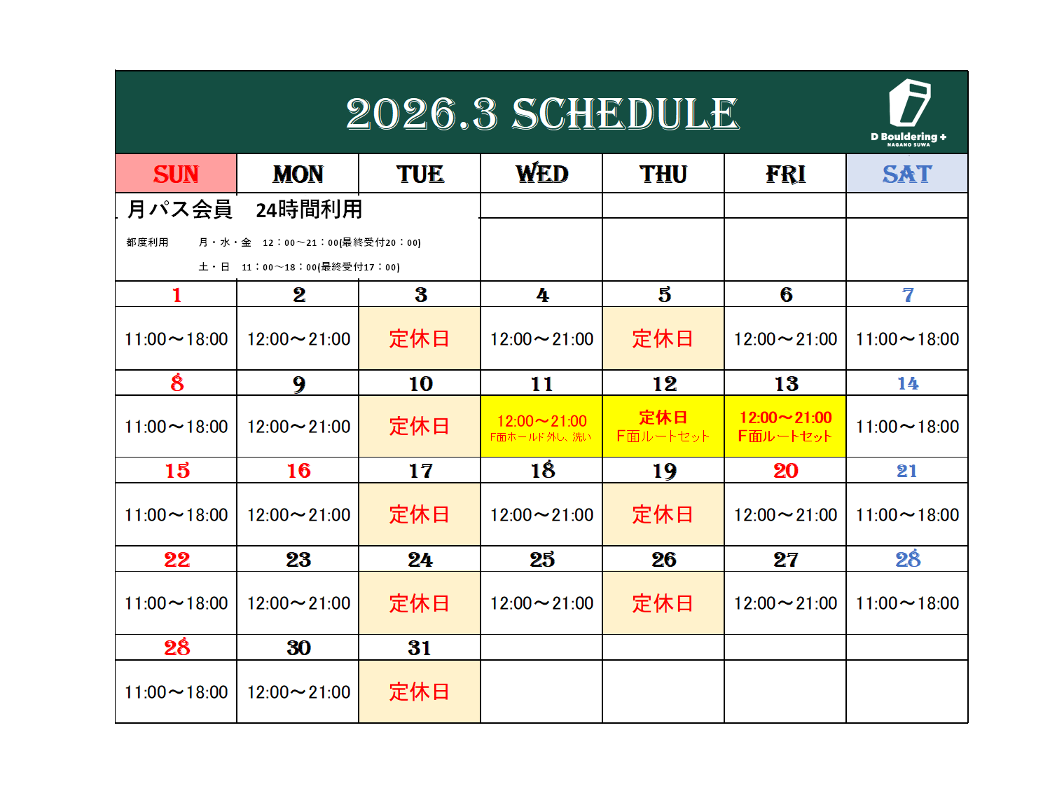 3月の営業日程更新しました!2026.02.27 -