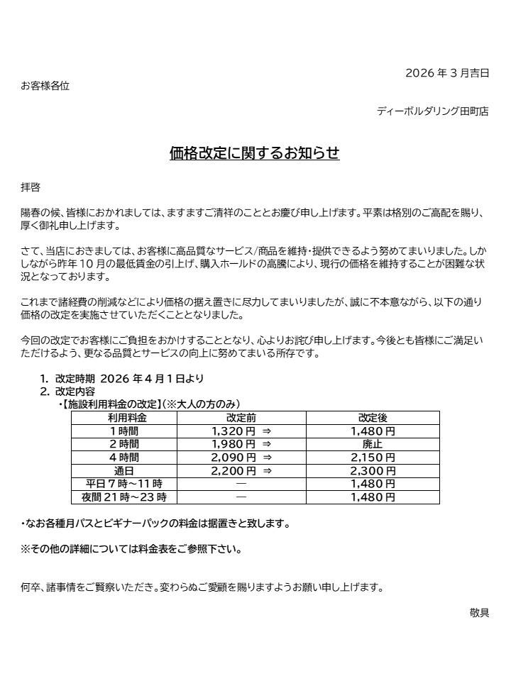 現在、HP上の記載が旧料金になっておりますが本日:4月1日より新料金でのご利用をお願いいたします。