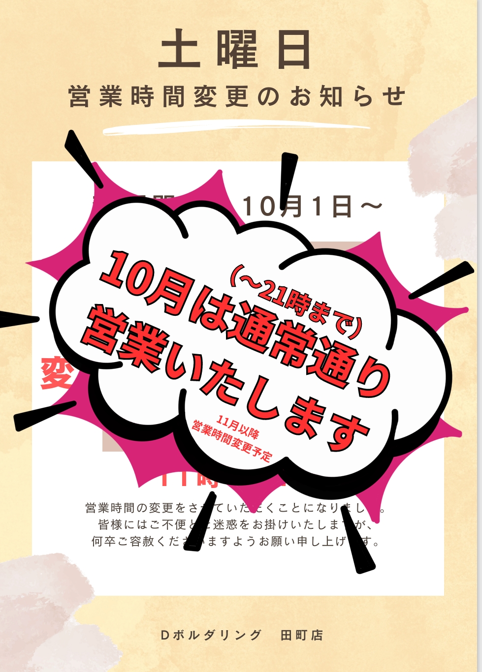 10月の営業カレンダー